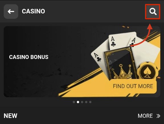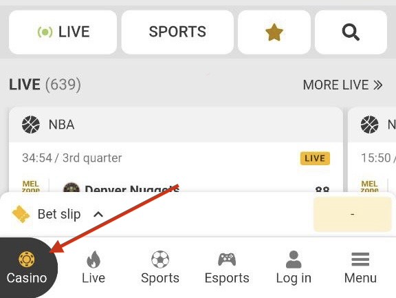Siguraduhin na nasa Casino section ka. Kung hindi, i-tap tulad ng nasa example.